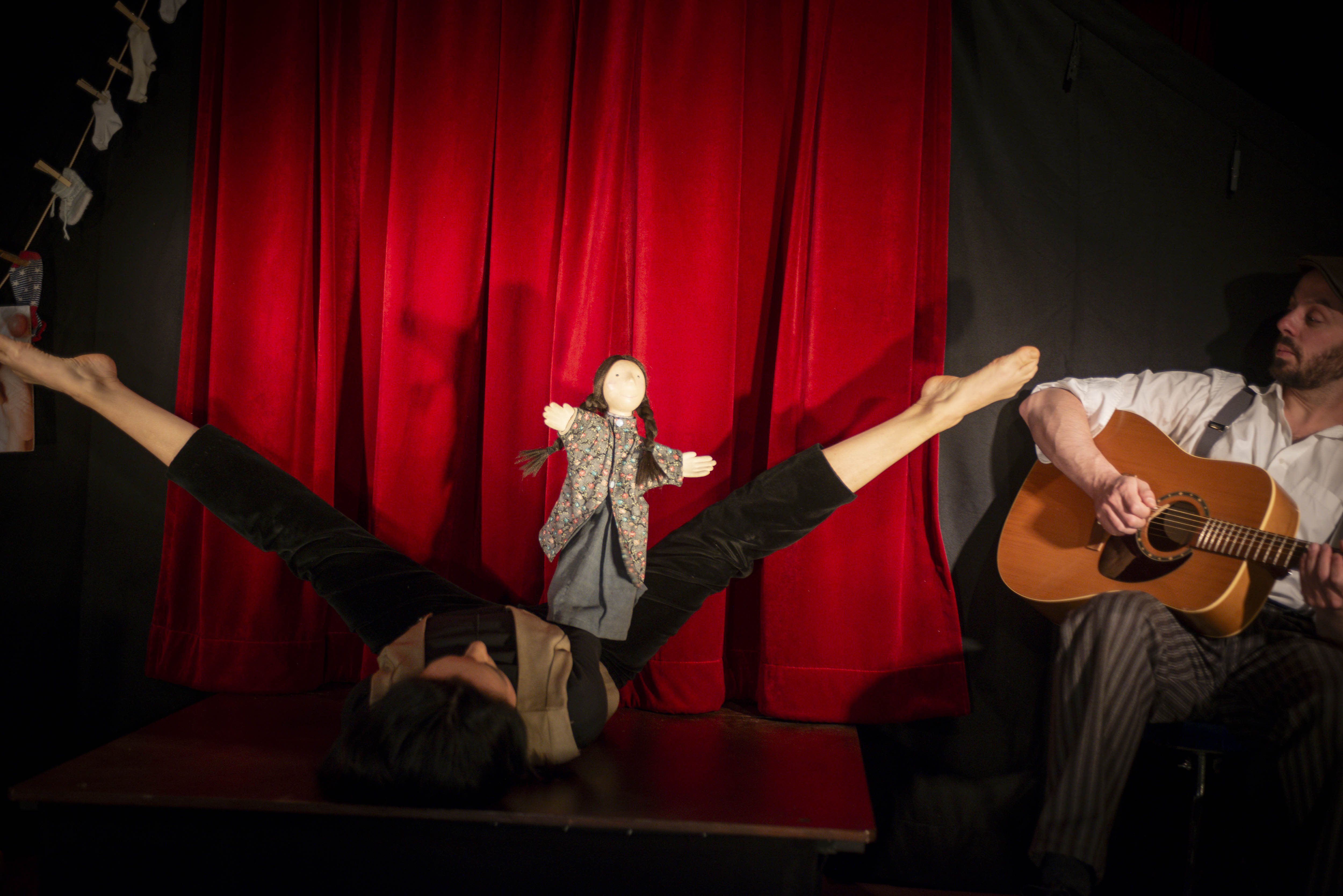 Marionnettes corporelles, à gaine et musique. Deux artistes: une marionnettiste et un musicien. Un spectacle familial dès 3 ans . Durée 35 mn + un temps de rencontre, d’échange et de découverte de l’univers à l’issue du spectacle soit 1 h à peu près en tout.
